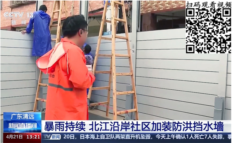4月18日起,清远境内持续受强降雨影响,大部分地区受到洪水影响,飞来峡镇21日凌晨开始安装移动防洪墙。
