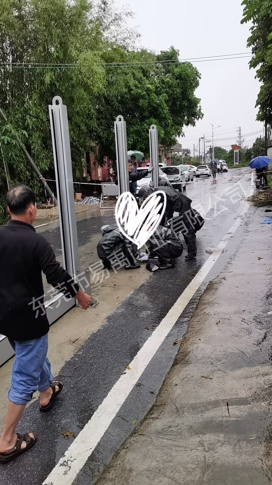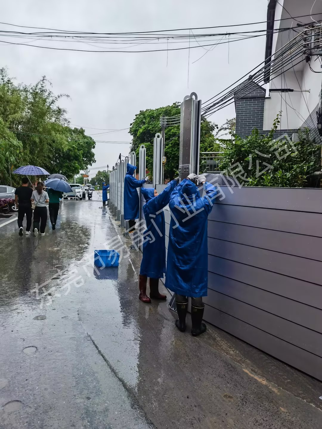 为保障居民生命财产安全,设置移动式防洪墙,防止洪水汇聚到低洼处造成威胁。
