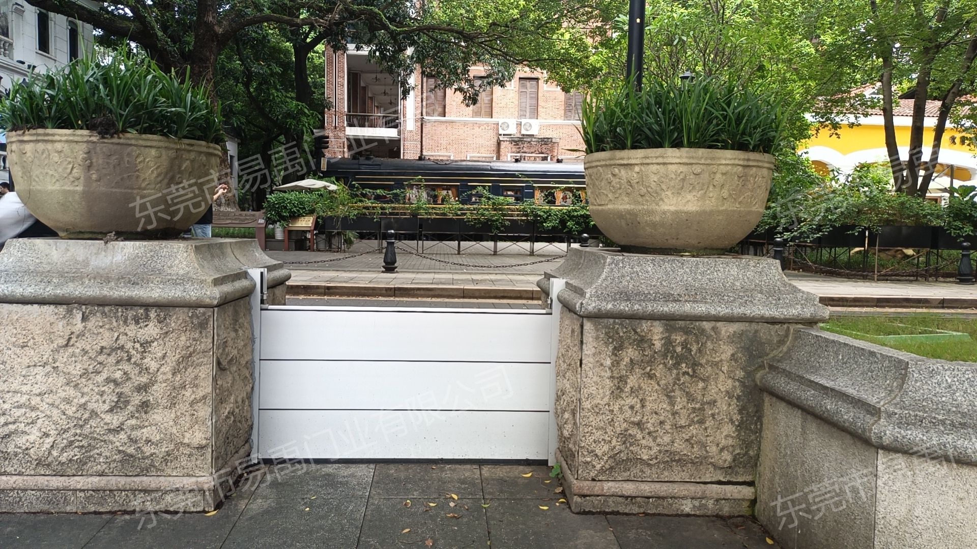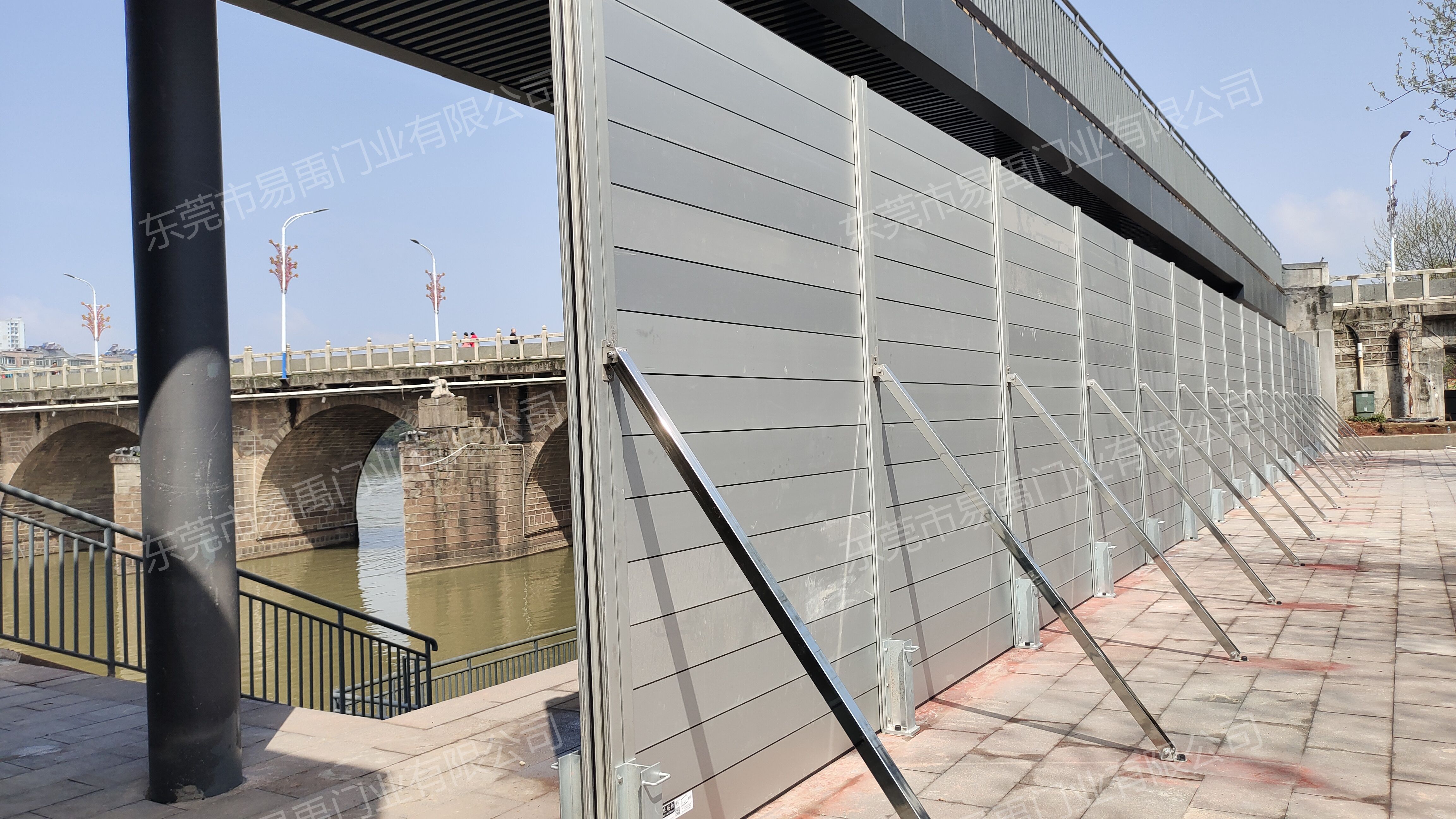 汛期来临时只需取出储存的立柱、挡板和下压件即可安装挡水板,挡水板通体使用铝合金材质,三人操作一段只需两分钟,可以做到方便、快捷、轻便。
