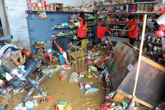 暴雨过后商铺内的卫生打扫、货品更换摆放都是头疼的问题。